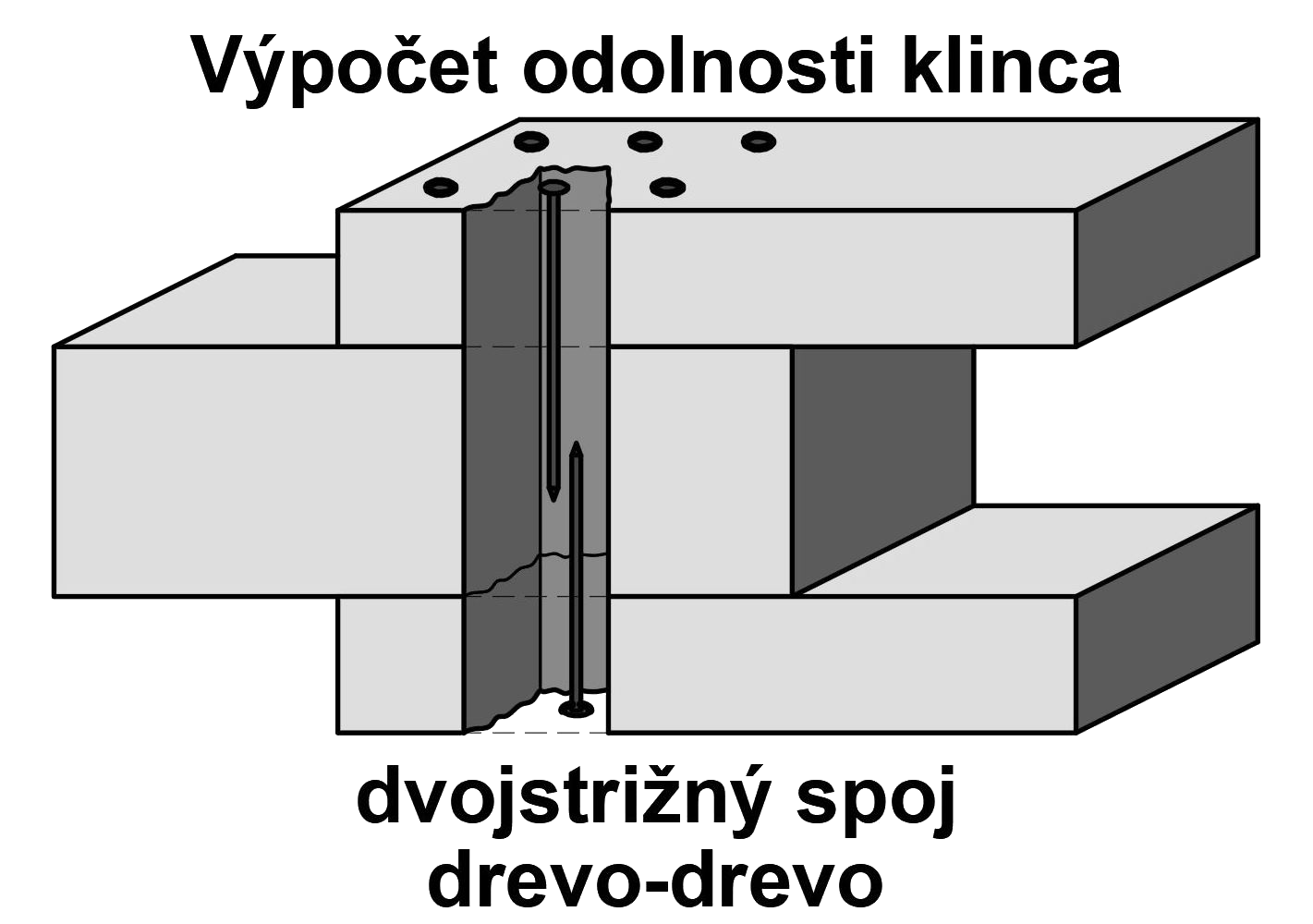 Klincovaný spoj, dvojstrižný, drevo-drevo