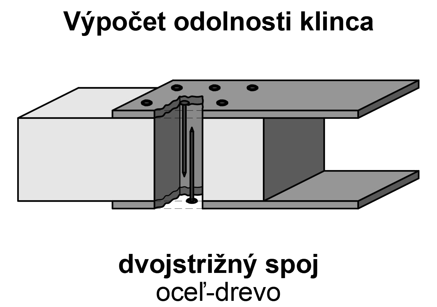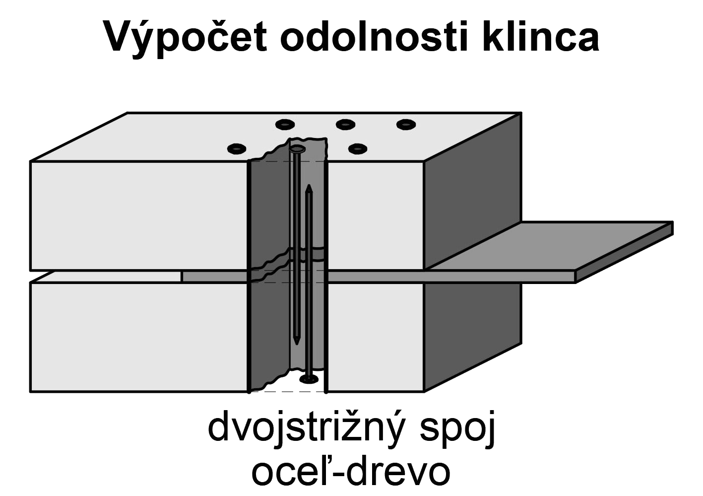 Klincovaný spoj, dvojstrižný, oceľ-drevo
