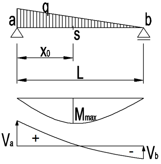 Trojuholníkové zaťaženie pôsobiace na nosník